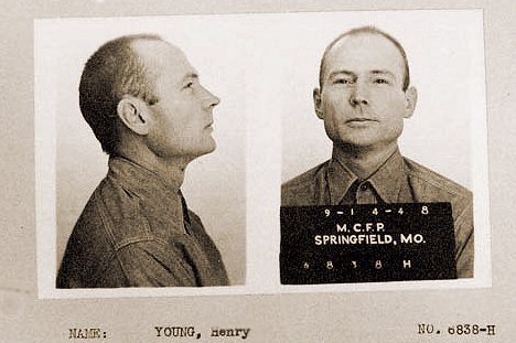 World War Two granted the penitentiary relief from bad publicity. The press forgot about public enemies and turned to Fascist ones across the oceans. Henri Young turned quiet after his September, 1941 release from solitary confinement. In February, he complained of "Dizzy spells" to Dr. Ritchey.(4) He did not return until May 14, 1942 when he complained to Dr. Ritchey that the other inmates were annoying him and asked to be placed in Isolation. Doctor Ritchey gave the order and it was done. Two days later, guards opened the door of the Hole to see how Henri was and found him sitting in a pool of blood. Young had broken the lens of his eyeglasses and used one of the shards to slice open a vein on the outer surface of his forearm. He lost enough blood to become nauseated and require hospitalization.